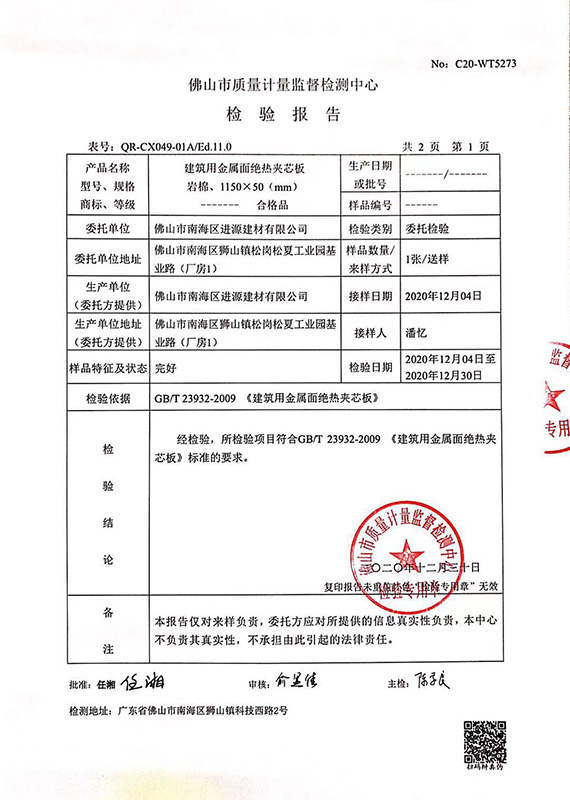 2021年最新巖棉板檢驗(yàn)報(bào)告